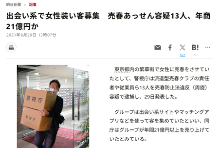 援デリ業者の運営は売春防止法違反であり、明確な犯罪行為です。