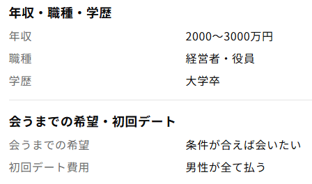 男性ユーザーは、プロフィールに年収、職種を設定しています。