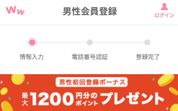 男性の新規ユーザーは、最大1,700円相当のポイントが貰えます。