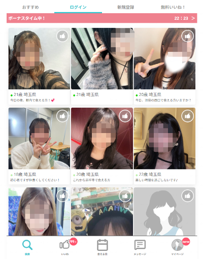 また、PJやパディと同じく、新規登録ポイントが貰えるので、有料会員にならなくてもP活女子と出会える可能性はあります。